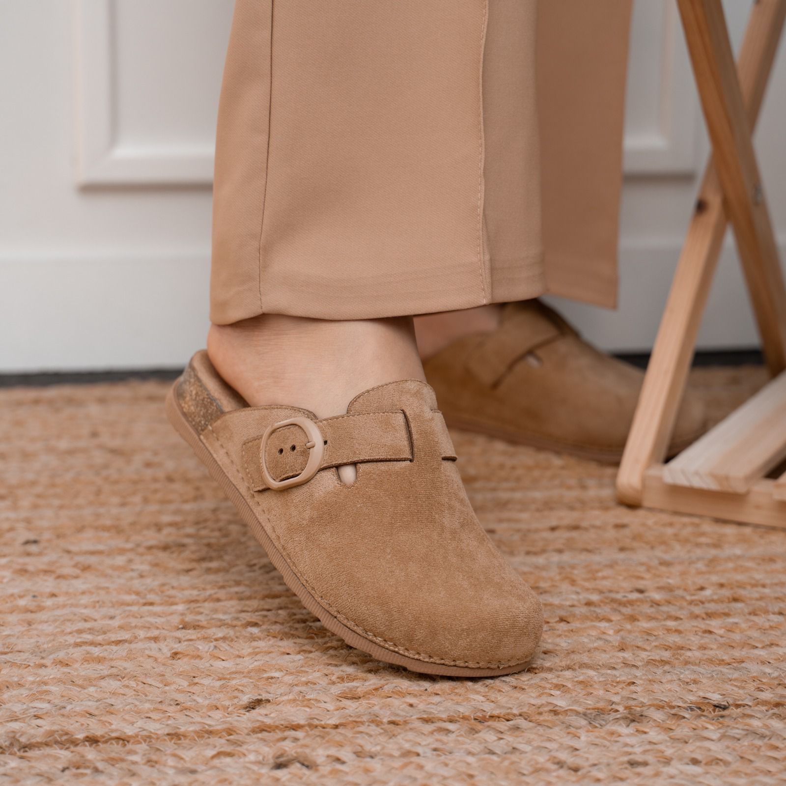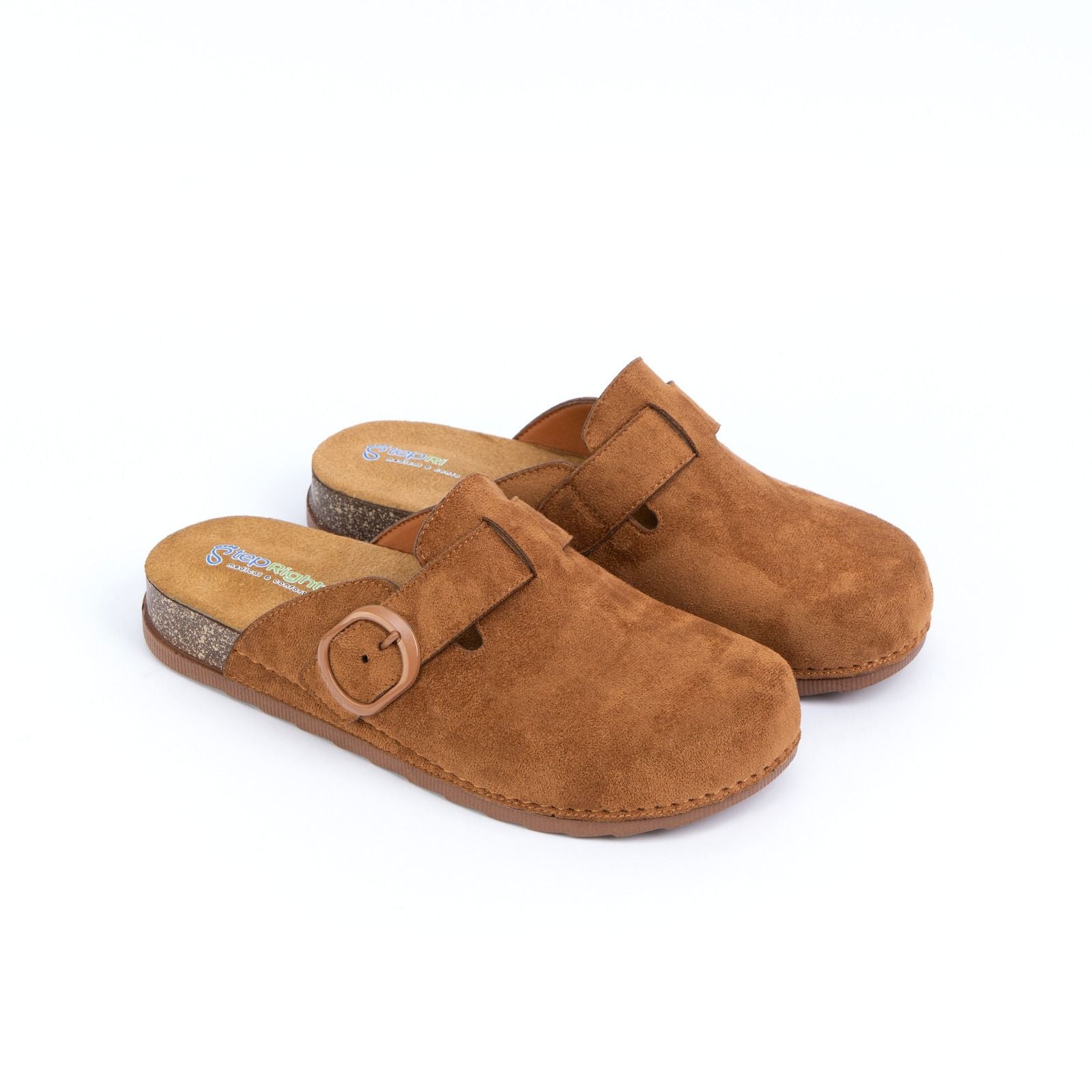 🔹 الخامة: جلد طبيعي أو شمواه فاخر 🔹 البطانة: إسفنج طبي ناعم يدعم القدم ويوزع الضغط 🔹 النعل: مطاط مرن مقاوم للانزلاق 🔹 المشبك: قابل للتعديل لراحة وثبات أكبر 🔹 الراحة: مناسب لمن تعاني من آلام القدم، الكعب أو التعب أثناء المشي
